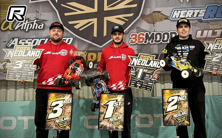 Sworkz’s Juan Carlos Canas has won Neoland, the Spaniard taking the NitroBuggy win on the return of racing to Harper Adams in the UK over the Easter weekend. The spiritual home of Philip Mortstedt’s Neo Race, a race that was widely referred to as the 1:8 Buggy Indoor World Championships, well known international track builder and Buggyland race promoter Miguelo Izquierdo Rodriguez resurrected the Neo event after a decade, and while he was somewhat under the radar for most of the weekend Canas came good when it counted most to win the 45-minute final. In qualifying it was the Xray of David Ronnefalk who secured the TQ, topping 2 of the 3 rounds, ahead of Team Associated’s Davide Ongaro, fastest in Q3 and also taking the overall eBuggy TQ. The Sworkz’s Mattia Polito would line-up third ahead of Canas with Mugen Seiki’s Berkan Kilic and Team Associated’s Marcus Kaerup completing the Top 6 on the 15-car grid. In the final Ronnefalk would lead the way for the first 20-minutes with Canas pushing him ever harder. The pair would tangle but resume in the same order only for Canas to execute the pass he was trying to line up shortly after. Once in front he took charge of the race to win by 3.5 seconds from Ongaro. Making a wrong call on tyre compound, Ronnefalk would eventually drop to P6 with Ongaro taking second and the Sworkz of 7th place qualifier Elliott Boots completing the podium just ahead of Kilic. In eBuggy, while Ongaro won A1 it was Ronnefalk who took the title with wins in A2 & 3. Behind Ongaro in second, eBuggy World Champion Kaerup completed the podium from P10 on the grid with Kilic finishing fourth.