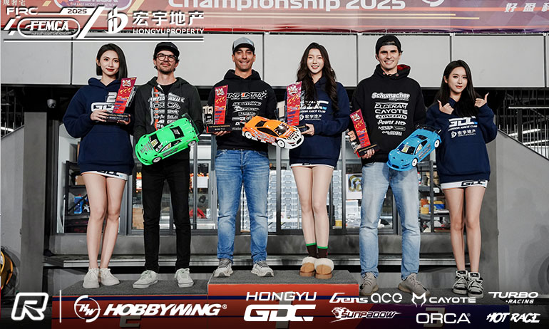 Infinity’s Bruno Coelho has retained his Asia Touring Car Championship title with a dominant display in the finals in Foshan, China. With this year’s FEMCA organised race attracting a stacked field due to the Hongyu GDC track hosting the World Championship next April, while qualifying produced TQ runs from three different drivers, in the finals the reigning World Champion was untouchable. His closest challenge would come from Awesomatix’s Lucas Urbain and while the French driver was closer in A2 he never really put Coelho’s title under threat. Feeling his set-up change for A2 wasn’t the right one, Coelho would run A3 winning that with the first & only 20-lap run of the weekend. While Urbain would crash out in A3, Naoto Matsukura fending off Michal Orlowski for P2, he would hold on for second overall while Orlowski completed the podium. Ryosuke Yamamoto and Pekko Iivonen completed the Top 5 ahead of Matsukura and Akio Sobue. In 13.5 Stock, it was also the Top Qualifier Shin Sawada who took the win. After a bad start to the finals spinning on lap 1, the Xray driver won A2 & 3 from team-mate Adam Izsay. Unfortunately the delayed time schedule meant A1 winner Enrico Jung had to leave for his flight back to Germany so it was Jan Ratheisky who completed the podium.