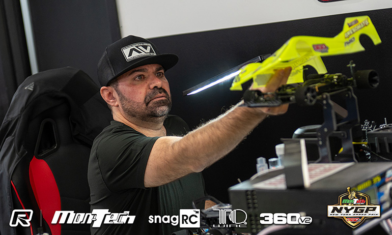 Defending Montech NYGP 1:12 Modified Champion Kemp Anderson has opened the 7th edition of the New York based event with a TQ run, the Awesomatix driver fastest from team-mate Sam Isaacs and CRC’s Ollie Payne. Having topped seeding in AbsoluteHobbyz 1:12 Modified class, the 23-year-old carried that form in to the first of the four scheduled qualifiers at the 360V2 track taking the 8-minute run by almost 3-seconds from Isaacs. After a strong start, Payne dropped back finishing a further 2.3-seconds off the TQ pace. Organiser of the NYGP, Donny Lia would get a fourth for the round despite the multiple World Championship finalist struggling to get his Awesomatix to his liking. Excelerate’s Josh Cyrul and 1:12 Spec World Champion Max Mächler completed the Top 6, with the later having to be marshaled, which cost his almost 6-seconds on a track where Anderson’s fastest was an 8.415.