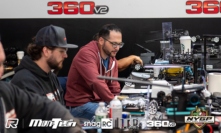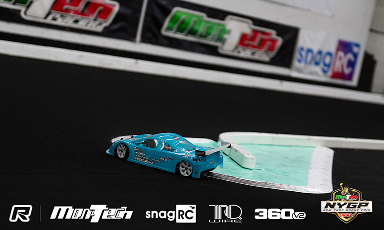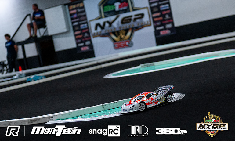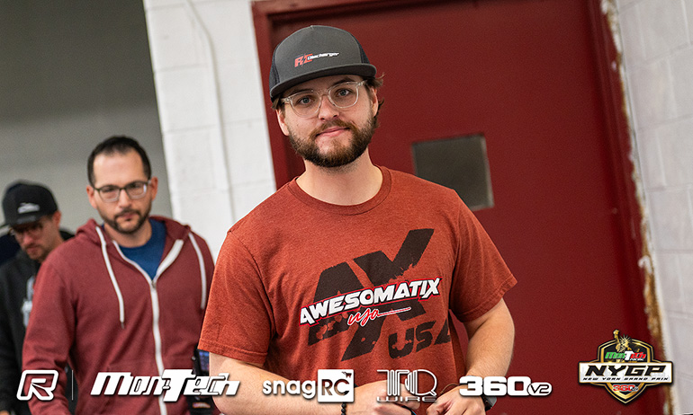 Having kicked off qualifying at the Montech New York Grand Prix with a TQ run in 1:12 Modified, Awesomatix’s Kemp Anderson concluded the first round with a TQ run in the Speedzone Modified Touring Car class. With Sam Isaacs topping seeding at the 360v2 indoor carpet track, a mistake from the ROAR National Champion would allow Anderson to take the round by 1.6-seconds, the American duo having the edge on NYGP first time visitors Lucas Urbain and Jan Ratheisky, the two European’s having very different Stateside racing experience. Despite a crash that cost him over one & half seconds & promote team-mate Ratheisky to fourth, Drew Ellis would complete the Top 5 for Xray.