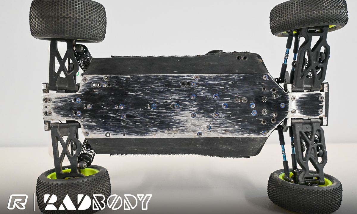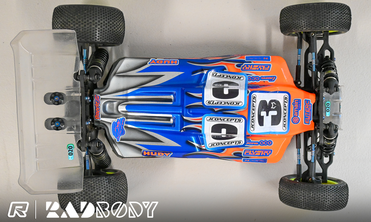 Dakotah’s buggy was built using titanium turnbuckles, titanium screws, and a bearing set all from JConcepts. He also chose to run JConcepts distinctive looking Pioneer wheels.