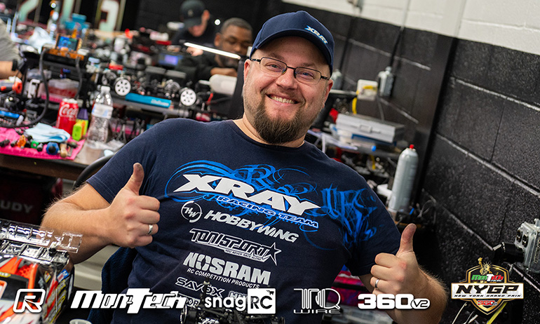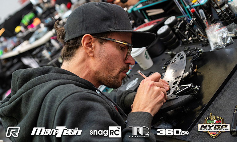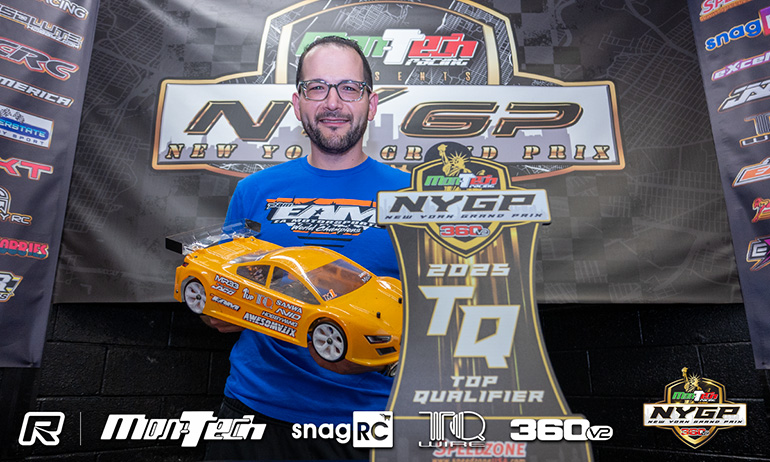 Awesomatix’s Sam Isaacs is the Top Qualifier of the Speedzone Modified Touring Car class at the 7th annual Montech NYGP. Winner of his latest ROAR Touring Car National title earlier this year at the 360v2 track in New Rochelle, he would secure pole for the track’s blue ribbon event with his time from the 3rd of the 4 rounds of qualifying. While he would lose out on the TQ in 1:12 Mod to Donny Lia in the final qualifier, track conditions for Q4 of Touring Car, the final heat of qualifying, would see no one improve on their times. Isaacs still topped the round 3.5-seconds ahead of NYGP debutant Lucas Urbain and Kemp Anderson, a driver who has attended every running of the Donny Lia organised race. For tomorrow’s A-Main starting grid it will be Anderson who starts second ahead of Urbain with Xray duo Jan Ratheisky, another NYGP first timer, and Drew Ellis completing the Top 5.