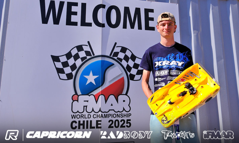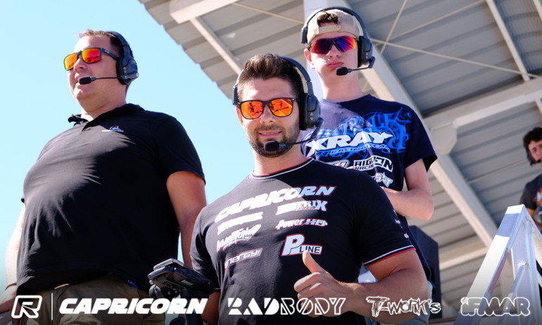 Day 1 of qualifying at the IFMAR 1:8 Onroad World Championship has been completed in Chile and it has provided plenty of variety with the three rounds producing TQ runs from three different drivers, Capricorn’s Toni Gruber coming good on his status as one of the title favourites to TQ the day’s final encounter. With Top Seed Andrea Catanzani steering his Serpent to the opening TQ, the second round saw the number 2 seed Maxime Ripoll deliver on his impressive practice form with a TQ run and together with a P2 in the last run of the day the 19-year-old French driver leaves the CACH Facility this evening as the overall TQ holder. With Gruber having highlighted the afternoon runs were he was strongest, the German was locked in a tight battle for the Q3 top spot with it going down to the wire with Ripoll, and Mugen Seiki’s Shoki Takahata until the latter had a bad lap. In the end Gruber would have an advantage of 3/10ths of a second over Ripoll at the end of the 7-minutes with Takahata competing the Top 3 ahead of the Capricorn of Thilo Diekmann. For Catazani the day wouldn’t finish as it started as his car came to stop on track. Having had his crew practice pit stops during the lunch break, this time it would be Catanzani’s own error during the stop as he came in too fast and got out of shape under braking. Still in TQ contention however, a driver error on track at the same spot as his contact with Ripoll a round earlier, would cancel that potential. With his engine running very lean in the qualifier it would eventually stop just shy of the 7-minutes. With the 7-minute heats bringing an extra element to the qualifiers and piling the pressure on pit crews, Simon Kurzbuch would end the day with a bad stop. With his pitman unable to catch the car properly, the fuel was released all over the car causing the former World Champion to spin on release and with no fuel taken on he would have to revisit the pit lane, the result being a P9 for the round. Despite this the Swiss racer holds P3 just ahead of team-mate Takahata with Catanzani fifth.