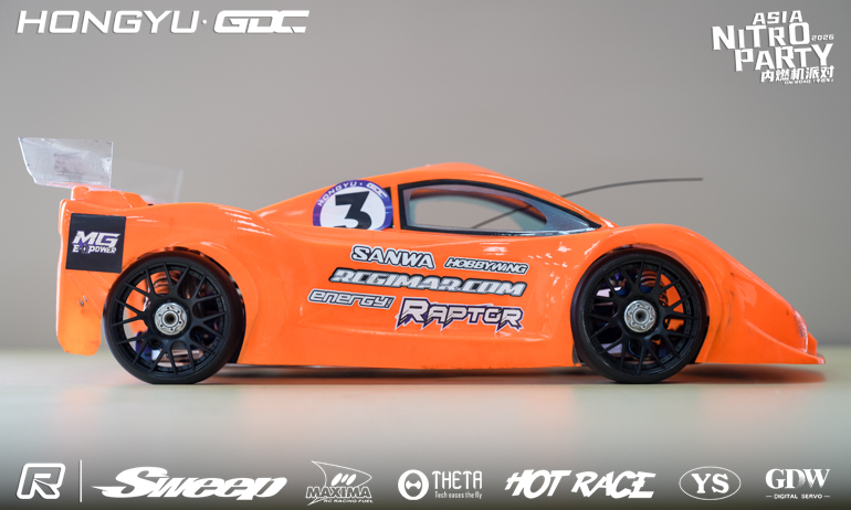 Running Raptors 2026 car, kits due for release in February, Alessio’s GT features a flat chassis to reflect the new IFMAR rule change that came in after his World Championship win in Chile. Other updates for 2026 include a new shock tower, new shock positions, and a new front bumper for the flat chassis.
