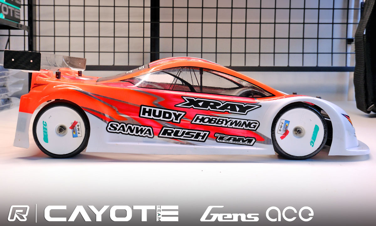 Jin’s car is fitted with Xray’s optional 1.2mm Steel chassis as well as their -1 optional upper bulk heads, hard arms, aluminium hubs, 1.1mm anti-roll bar, and PSS Shocks inserts (front only).