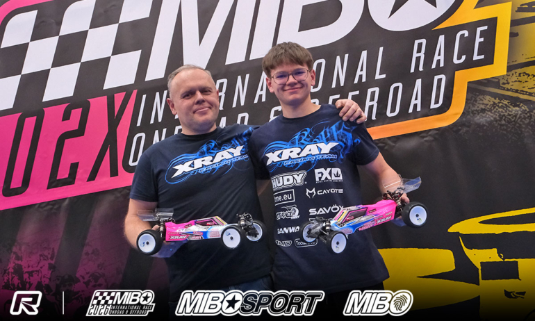Xray talent Bartek Zalewski will go for the buggy double at MIBO International as the Top Qualifier in both 2WD and 4WD. The Polish racer who is the reigning 2WD Champion of the annual Czech event and the 4WD Champion from the year before, will chase his first double title looking to emulate Bruno Coelho’s achievement at inaugural running of the race in 2023. Zalewski had the perfect event up to Q3, when Schumacher’s Michal Orlowski knocked him off the top of the timing sheet for the first time by delivery the TQ run in both 2WD and 4WD after a not so great start to qualifying. While Orlowski would of course liked to have push the TQ battle to Sunday morning’s fifth & final qualifier, Zalewski produced the fastest runs of the day in Q4 to lock in pole position for the triple finals. Daniel Kobbevik however push him hard in 2WD missing out by just 4/100ths and the Schumacher driver holds P2 overnight in both classes. In 2WD Sworkz’s Micha Widmaier sits in P2, the Austrian back up his second fastest time in Q2 with another in Round 3. Orlowski is tied on points with team-mate Kobbevik in 4WD but with the Norwegian having the faster individual qualifying time he is ranked 3rd.