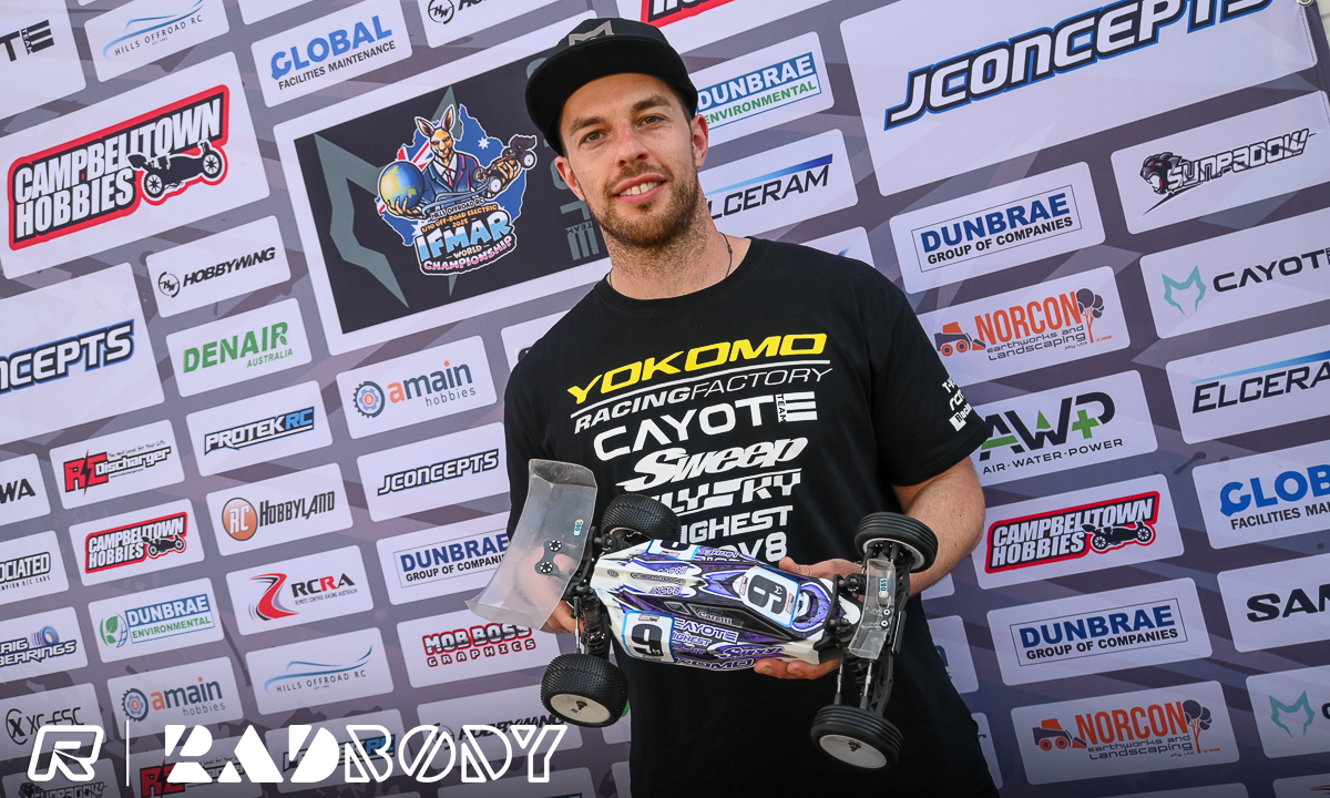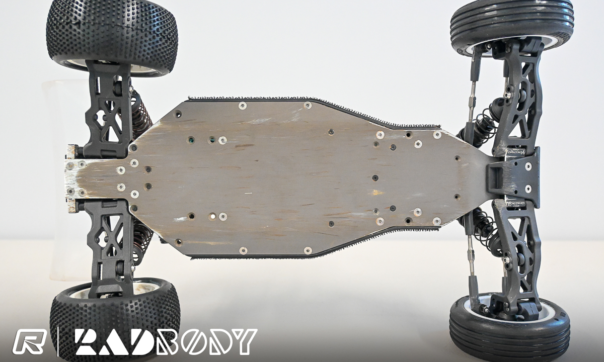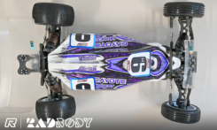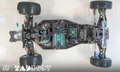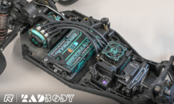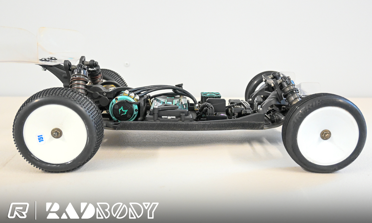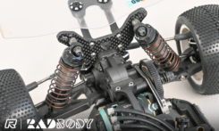 Broc’s World Championship winning buggy features a new, soon to be released optional, flat mounting servo chassis brace as well as a more adjustable rear pivot. His car is also fitted with Whitz Racing Products ceramic bearings, titanium turnbuckles, and a titanium screw set.