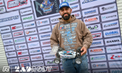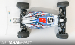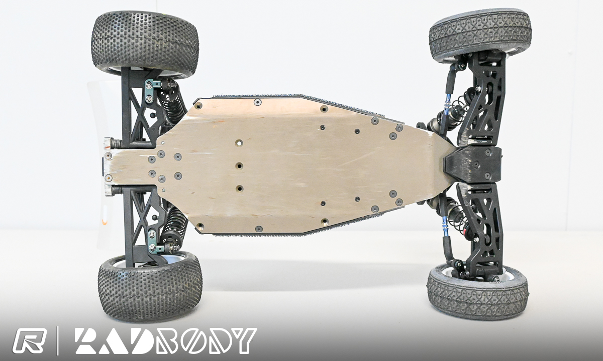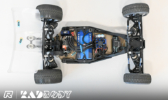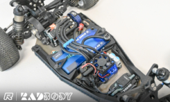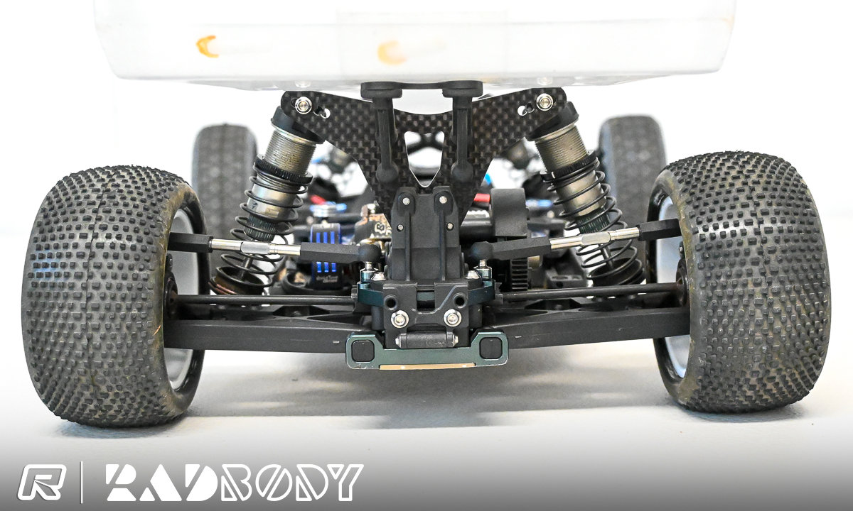 Broc’s World Championship winning buggy features a new, soon to be released optional, flat mounting servo chassis brace as well as a more adjustable rear pivot. His car is also fitted with Whitz Racing Products ceramic bearings, titanium turnbuckles, and a titanium screw set.