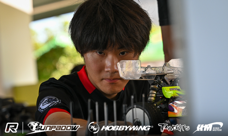 A driver of few words, asked about seeding Kouki said, ‘The first one was very good but for the second one we made some camber changes and also changed the engine which took time to get right but I think we will go back to the CP1 set-up for the first qualifying.’ Pleased to have to deal with less traffic today, yesterday’s session open by class making for a lot busier track, the 2025 Asian Buggy Championships Champion said it is still hard to get around without mistakes. Running on Hotrace’s Sahara tyre, he added, ‘3 laps is already hard to make consistent so 5-minute is going to be very hard’, those were his thoughts before finding out qualifying will in fact 5 rounds of 8-minute heats!